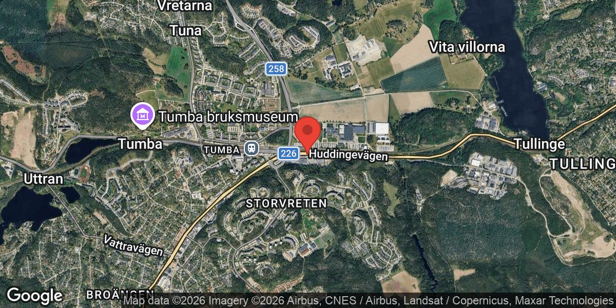En trafikolycka med flera fordon har inträffat på väg 226 mellan Huddingevägen/Bryggarvägen och Huddingevägen/Skyttbrinksvägen i riktning mot Stockholm. Ett körfält var avstängt under händelsen.
